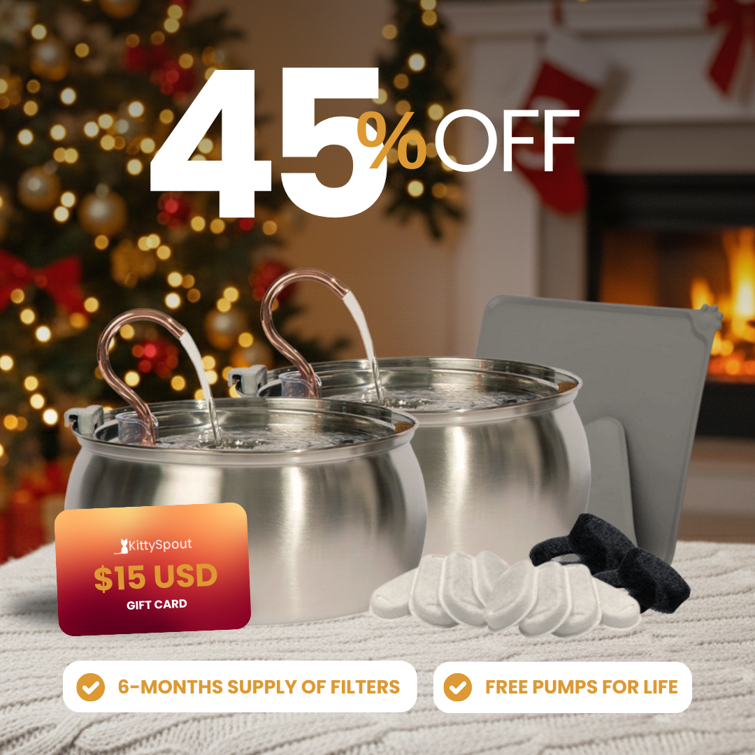 The KittySpout improves your cat's health & happiness by providing them with fresh, filtered water all day long. Loved by thousands of busy cat parents for its spout-like design and easy use.