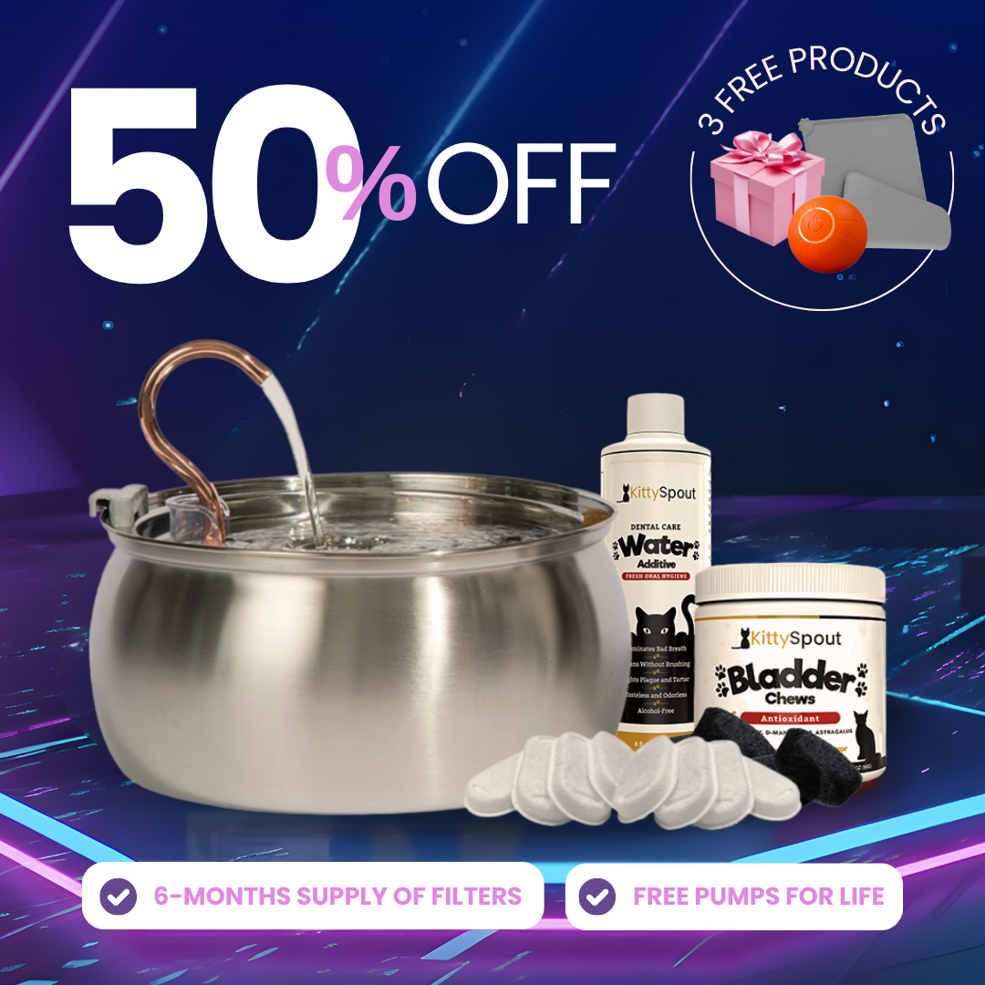 The Triple Action Carbon filter removes magnesium, calcium, hair, dirt and other impurities from your cats water. These minerals can accumulate in your pet’s lower urinary tract and lead to urinary tract infection.