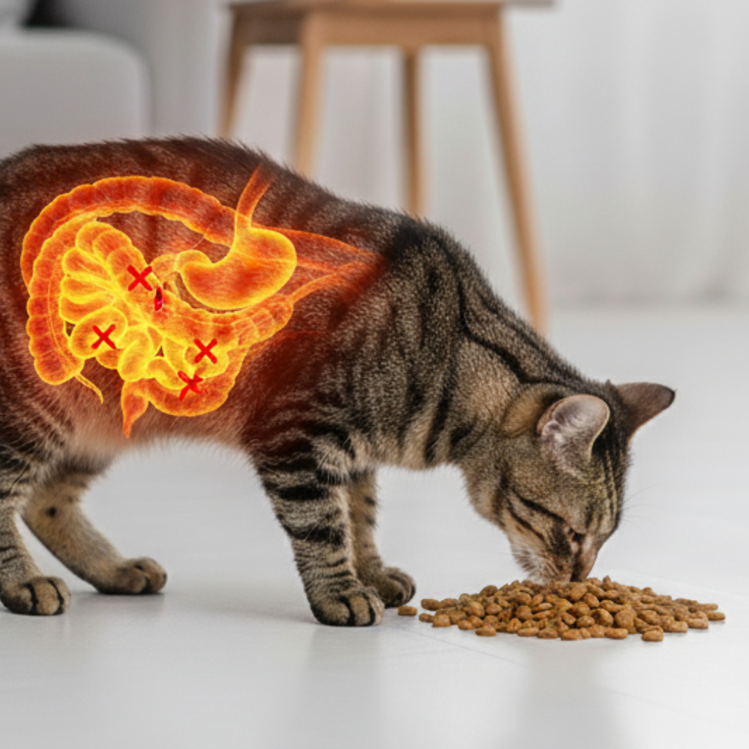 Probiotics improve nutrient absorption and reduce inflammation — helping sensitive cats better tolerate their regular food.