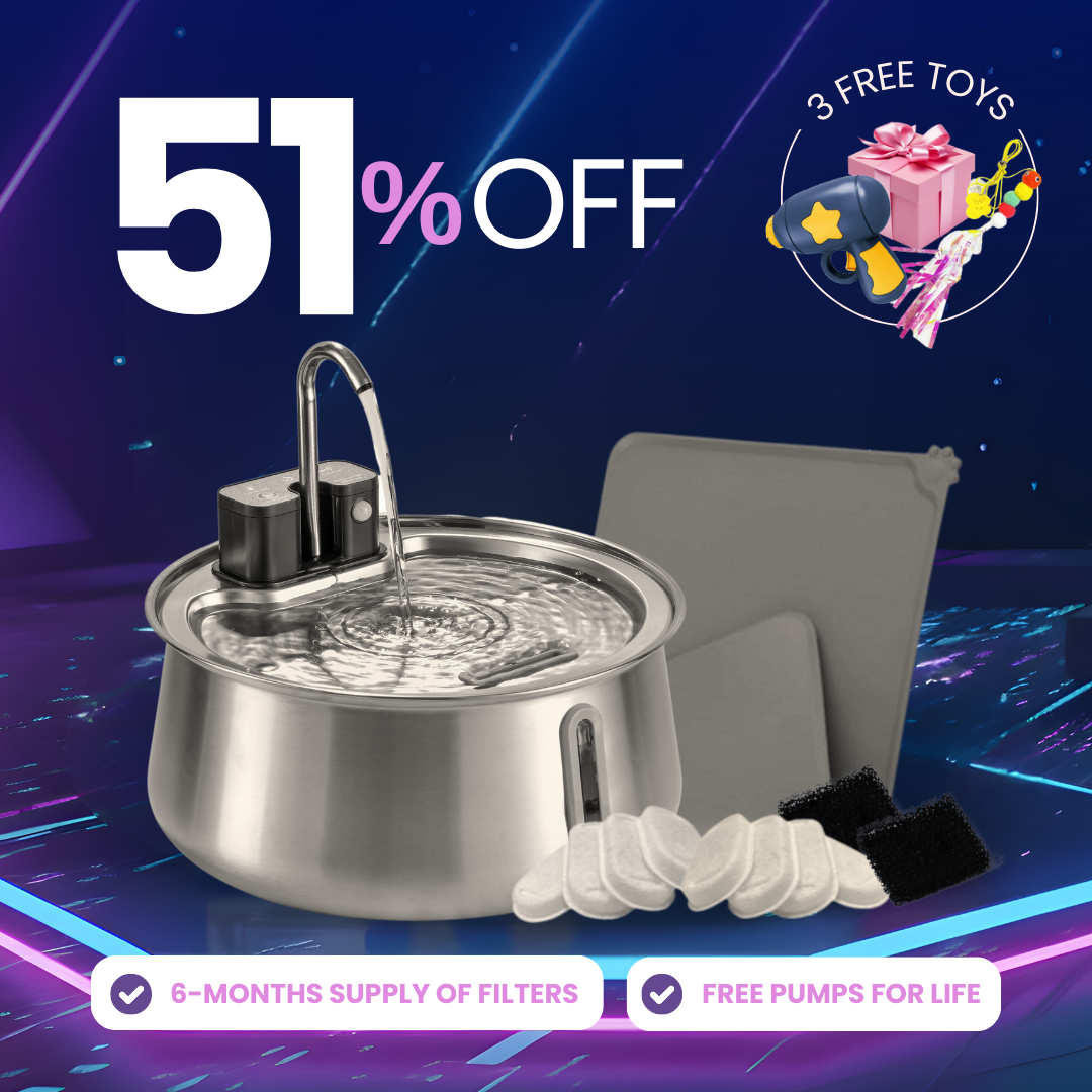 The Triple Action Carbon filter removes magnesium, calcium, hair, dirt and other impurities from your cats water. These minerals can accumulate in your pet’s lower urinary tract and lead to urinary tract infection.